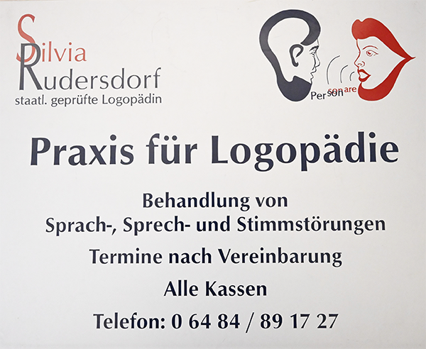 Silvia RudersdorfPfarrer-Dienst-Straße 1665614 Beselich-SchupbachTel.: 06484 / 89 17 27E-Mail: logopaedin.rudersdorf@gmail.comMitglied im: